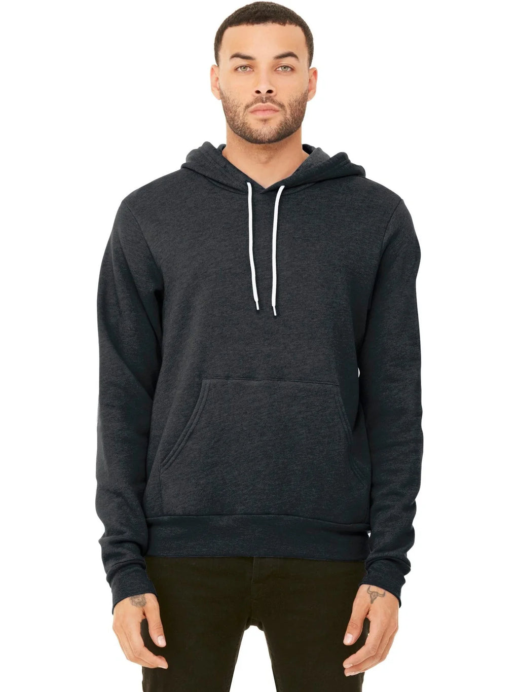 - Heather Navy: 8-ounce, 60/40 Airlume combed and ring spun cotton/poly fleece, 32 singlesĀ