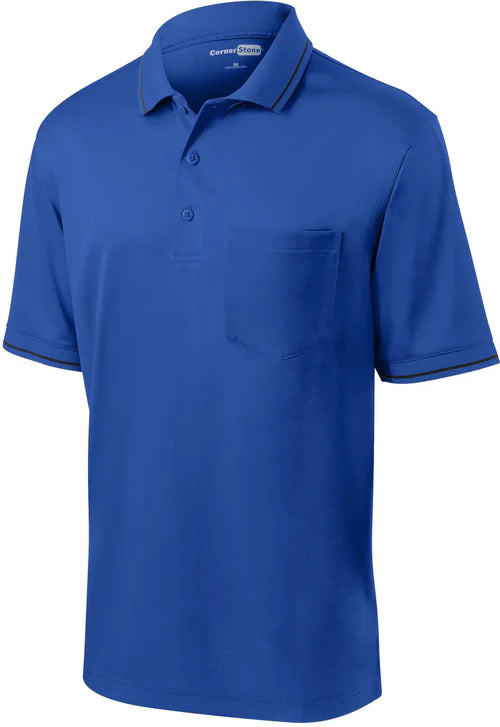 A left chest pocket and tipping add a bit of style to this hardworking essential that also defies snags, resists wrinkles, fights odors and wicks moisture.