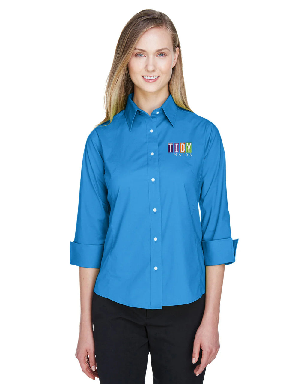 - Bust darts; Three-quarter sleeves with fold-up cuff detail