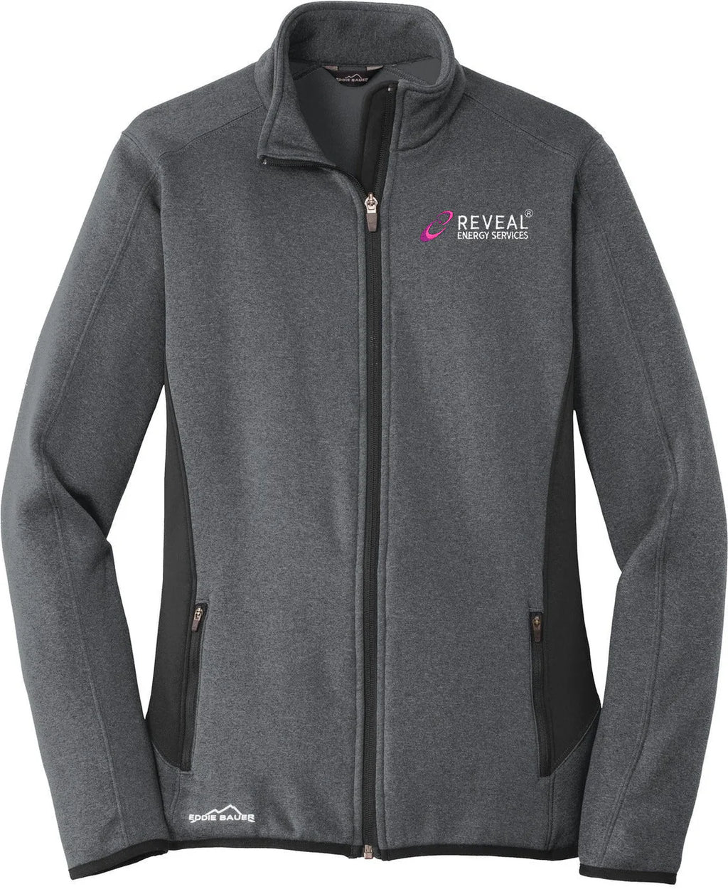 Built for movement, this smooth-faced, brushed-back fleece jacket is sophisticated-yet has a sense for adventure. Black contrast details at side panels, locking reverse coil zippers and stretch binding at cuffs and hem. Front zippered pockets. Contrast Eddie Bauer heat transfer logo on the right hem. Made of 5.6-ounce, 95/5 poly/spandex fleece.