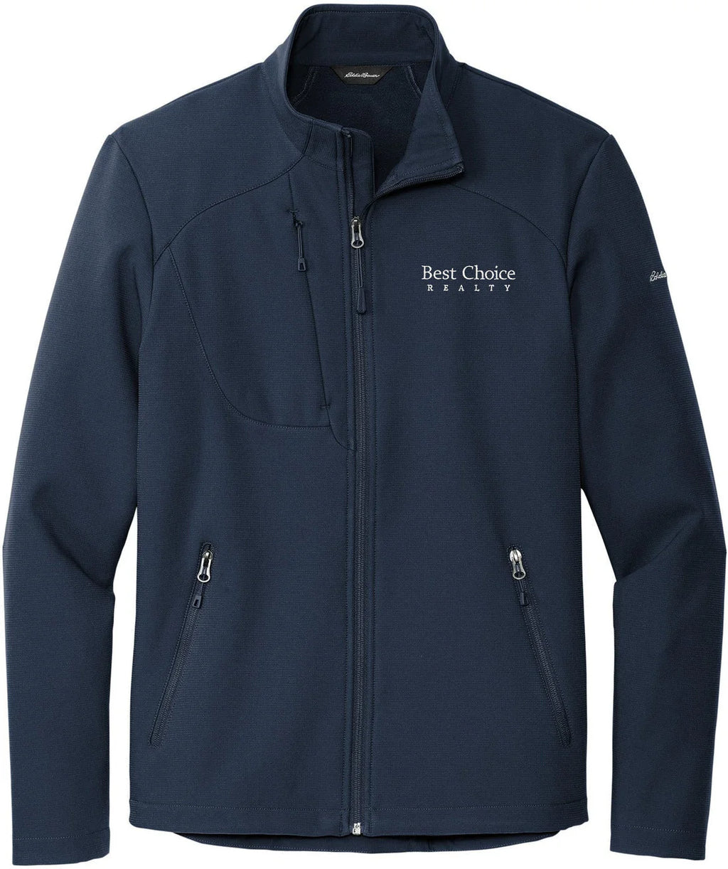 With 4-way stretch, a subtle ripstop texture and weather protection-these are the next-generation soft shell jackets to wear on the trails or around town. Made for mobility, these 3K/3K waterproof, breathable jackets with a durable water-repellent (DWR) finish feature an interior storm flap and chin guard. Streamlined and refined elements include an invisible zippered chest pocket, reverse coil center front zipper with an Eddie Bauer logo zipper pull. Adjustable locking drawcord hem and reverse coil zippered hand pockets. Embroidered Eddie Bauer logo on left shoulder. Made of 90/10 polyester/spandex bonded to a waterproof film insert and a 100% polyester fleece lining.