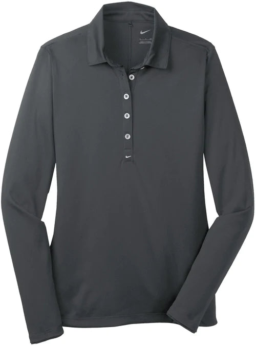 Long sleeves elevate this polo to another level of sophistication while Dri-FIT moisture management technology adds unparalleled performance. Stretch fabric for hassle-free swinging motion. Flat knit collar and cuffs. Heat transfer label for tag-free comfort. Three-button placket. Dyed-to-match buttons on White, Black and Midnight Navy. White buttons on Varsity Red, Anthracite and Blue Sapphire. The contrast Swoosh design trademark is embroidered on the lower left sleeve. Side vents. Made of 5-ounce, 100% polyester Dri-FIT fabric.