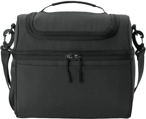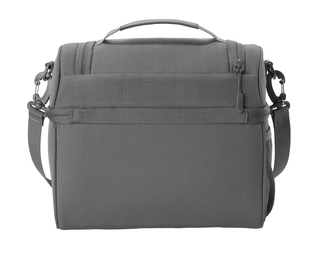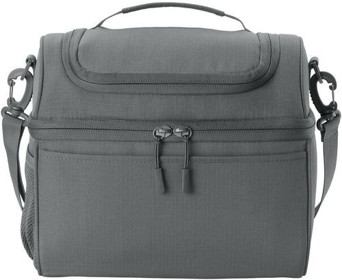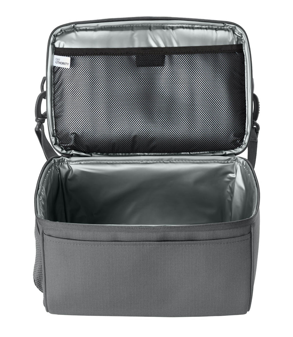 Zippered, insulated main compartment can hold up to six 12-ounce cans