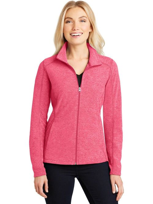 Venture out in warmth and style in this non-bulky microfleece that has a heather look for added visual appeal. An anti-pill finish helps preserve the smooth look on this trend-right style available at budget-friendly prices.