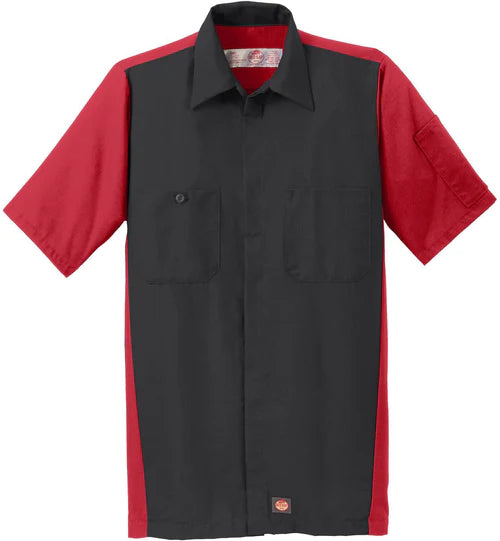 Around the garage, there isn't a better, more durable crew shirt. Tested through 50 industrial launderer washes, this moisture-wicking shirt has a stain-release finish and dark colorblocking on the body to hide stains, oil and grime.