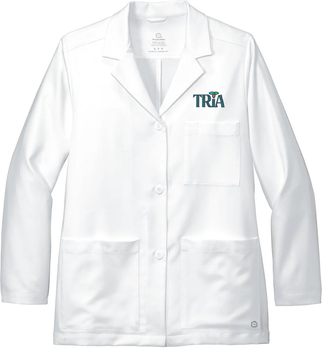 This WonderWink Ladies Consultation Lab Coat is a great choice for those working in labs or similar medical facilities. The long sleeved women's lab coat is made out of a 65/35 poly and cotton material. The coat features a locker loop and left chest pocket with a pen slot. The WonderWink heat transfer logo is visible at the left pocket of the jacket. The back length of the jacket is 29.5 inches.